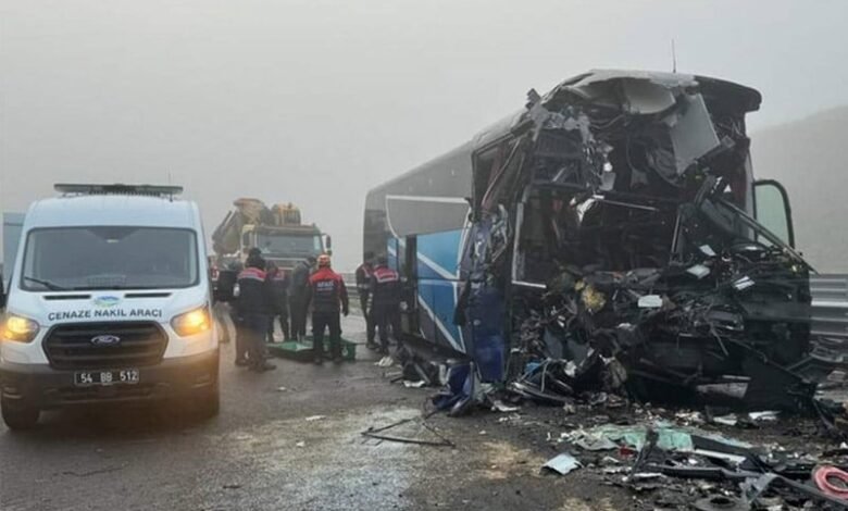 وذكرت وكالة الأناضول للأنباء أن الحادث وقع بين سبع مركبات، منها ثلاث حافلات وشاحنة، على طريق شمال مرمرة السريع بالقرب من حي داجديبي بمحافظة صقاريا.