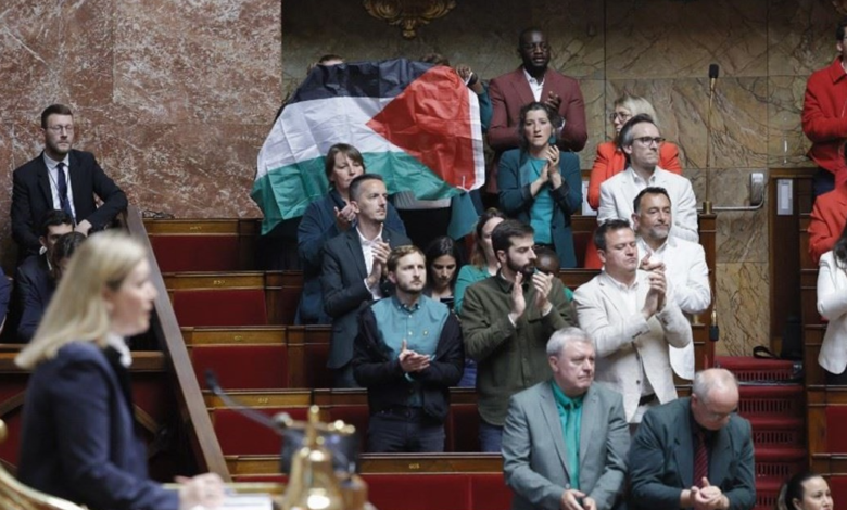 نواب في البرلمان الفرنسي شكلوا علم فلسطين خلال جلسة للجمعية الوطنية