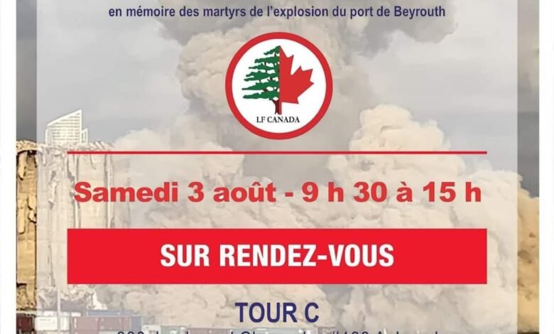 ينظم مركز القوات اللبنانية -مونتريال وبالتعاون مع Héma Qc حملة للتبرع بالدم في ٣ آب المقبل في منطقة الشوميدي لافال بدء من الساعة التاسعة والنصف وحتى الثالثة بعد الظهر وذلك بالتزامن مع الذكرى الرابعة لانفجار بيروت الآثم.