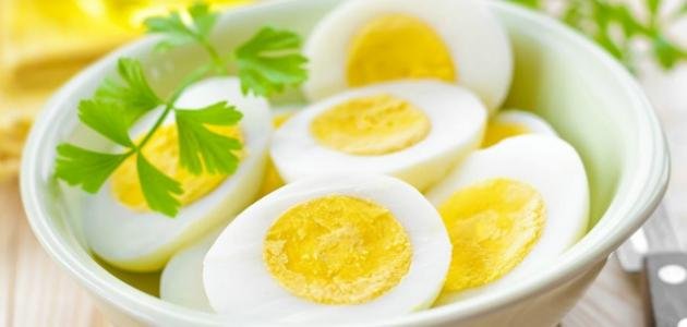 ويحتوي البيض على نسبة عالية من البروتين والدهون، حيث تحتوي البيضة المسلوقة على 6 غرامات من المادة العضوية الأولى و 5 غرامات من المادة العضوية الثانية مع فيتامينات مجموعة В وهذه مجتمعة تساعد على الشعور بالشبع لفترة طويلة.