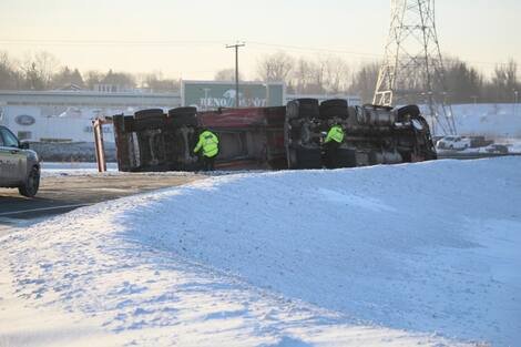 Le conducteur d’un semi-remorque a perdu la vie après que son véhicule se soit renversé sur le côté dans l’échangeur vers Duplessis Nord.