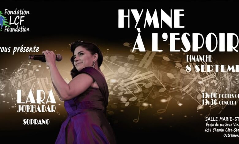 تستعد السوبرانو اللبنانية لارا جوخدار لإحياء حفل موسيقي في كندا يحمل عنوان “hymne A lespoir” يعود ريعه لصالح جمعية LCF الخيرية برئاسة نيكول عبد المسيح، بهدف دعم مؤسسات أطفال من ذوي الاحتياجات الخاصة في لبنان من مثل Irap وAfel وSVP وSESOBEL .