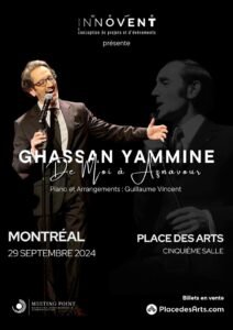 يُحيي الفنان المبدع غسان يمين وتحت عنوان “De moi a Aznavour” حفلا فنيا فخما في Place des Arts في مونتريال-كندا في تمام الساعة الثامنة من مساء الاحد الواقع في 29 ايلول المقبل.