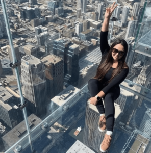 حافة مغلقة بالزجاج لأطول ناطحة سحاب في شيكاغو على ارتفاع 1،353 قدمًا فوق شوارع مدينة تشي.